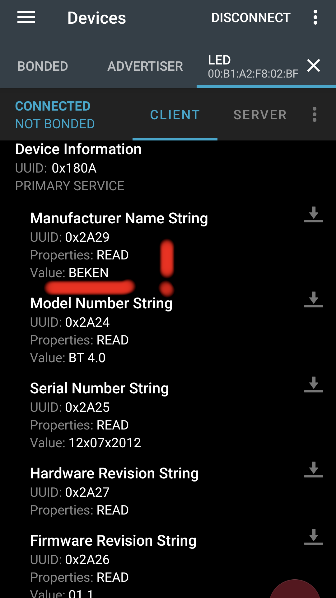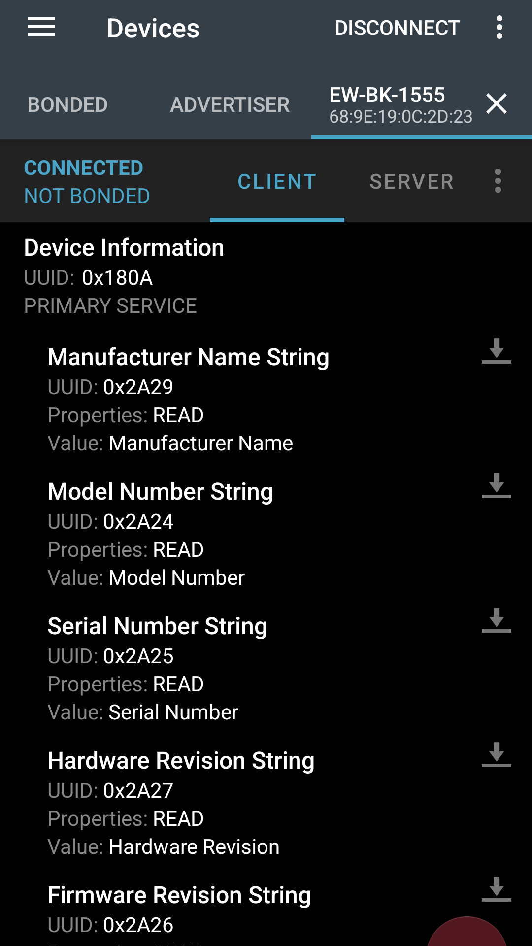 Package name: com.yuedongsports.e_health - UUIDs